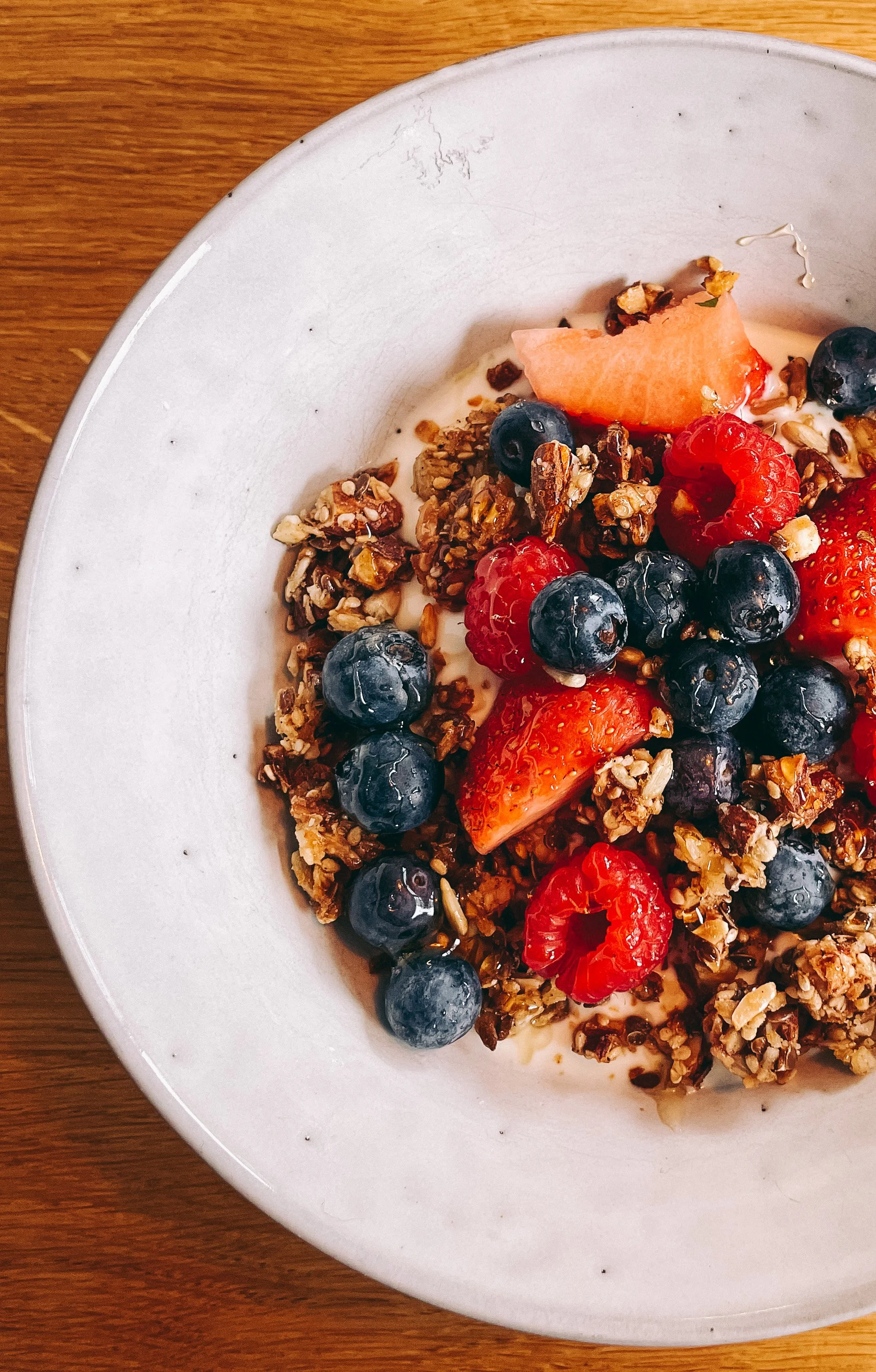 Mit griechischem Joghurt und saisonalen Beeren oder Früchten servieren. Bei Bedarf mit etwas Honig beträufeln. En Guete!