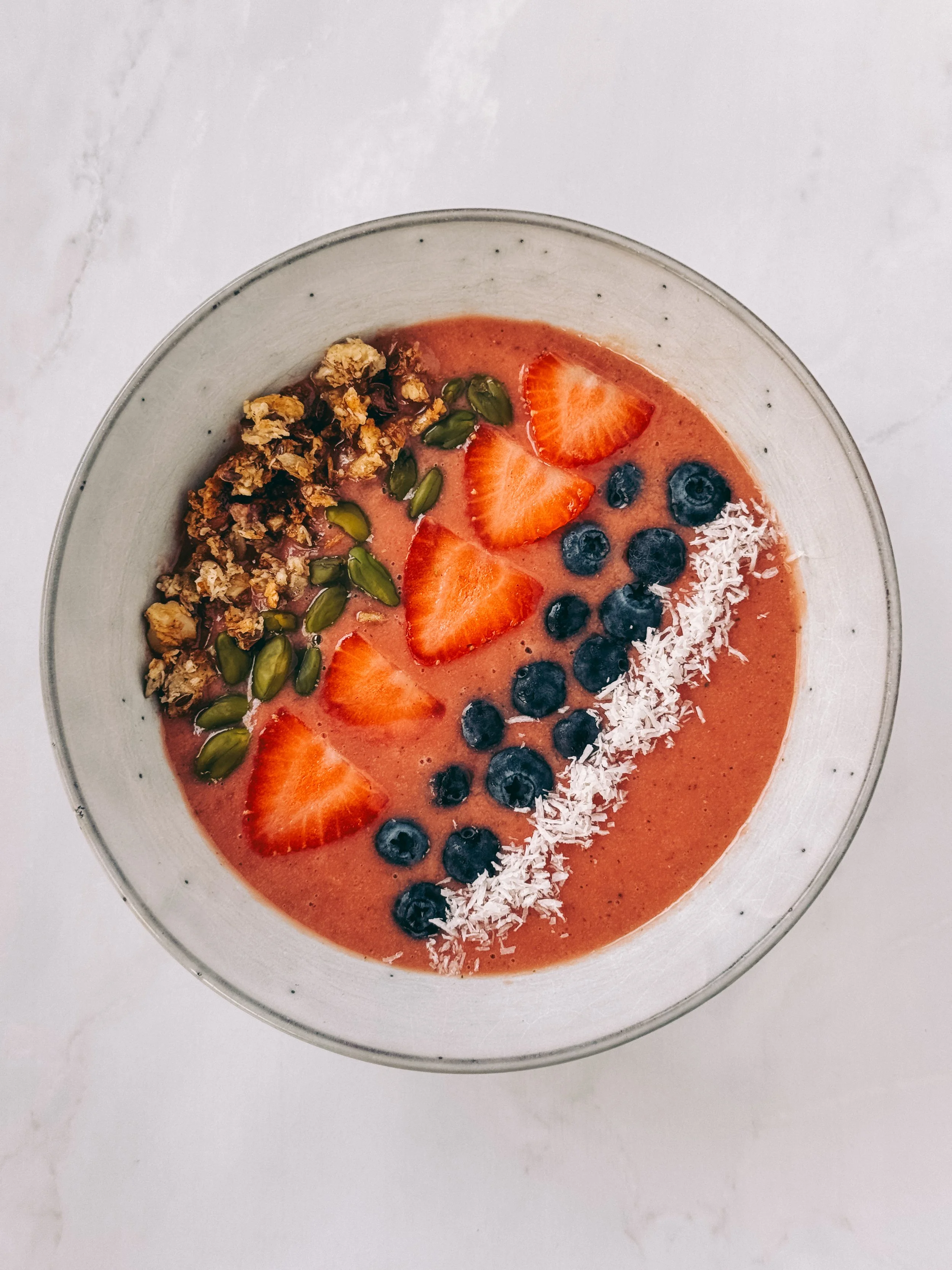 In eine Schale geben und mit Toppings nach Wahl dekorieren. Ich habe es u.a. auch noch mit meinem selbstgemachten Nuss-Granola bestreut. En Guete!